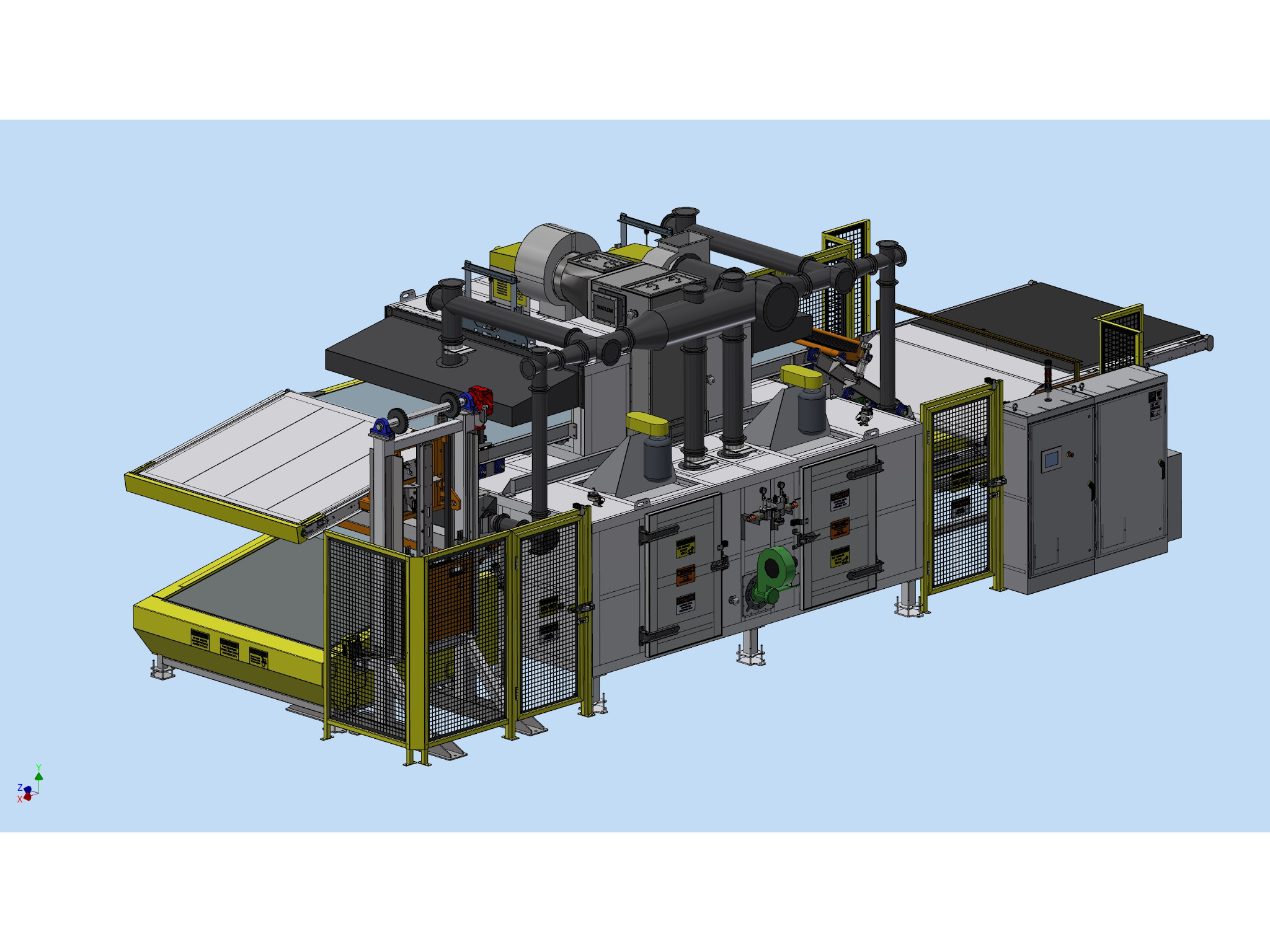 - Airflow: Designs can be completed to provide airflow from any direction within the heated chamber as required by the product. This particular process is vertical up and down airflow but it can be horizontal from either side.